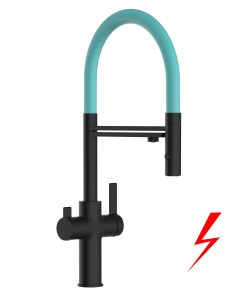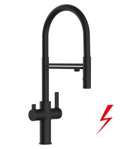 NIEDERDRUCK 3 Wege Wasserhahn Küchenarmatur, FC, mit 360° schwenkbarem L-Auslauf, Schwarz Matt