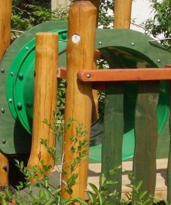 Stelzenhaus Spielkombination Vöhringen mit Spielhaus 1 Turm mit Dach + 1 Hängebrücke + 1 Kletternetz + 1 Holzbrücke + Türme