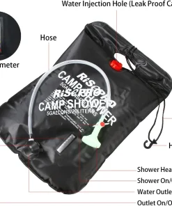 RISEPRO Solar-Dusche 20L – Camping-Duschtasche mit Temperaturanzeige, 45°C warmes Wasser