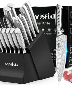 MOSFiATA Profi Küchenmesser Set mit Block, Fingerschutz, Edelstahl