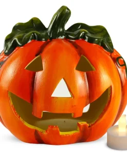 Halloween Dekokürbis Kürbis mit Teelicht Herbstdeko 18×17 cm