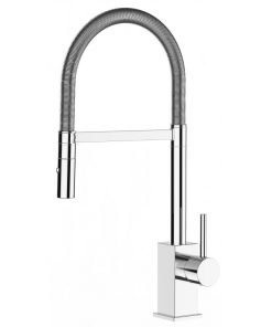 Wasserhahn Küchenarmatur, QU, mit 360° schwenkbarem L-Auslauf, Verchromt / Schwarz Granit