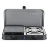 Dieser Kocher ist ideal zum Campen oder Caravaning. Beide Brenner können separat voneinander gezündet werden, verfügen jedoch über keine Piezozündung. Die Topfständer können einen Topf von ø 25 cm tragen und bieten somit eine einfache Möglichkeit, um Wasser zum Kochen zu bringen oder eine Suppe aufzuwärmen. Lieferung ohne Schlauch und Regler.