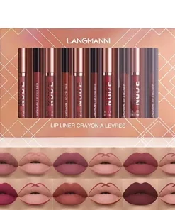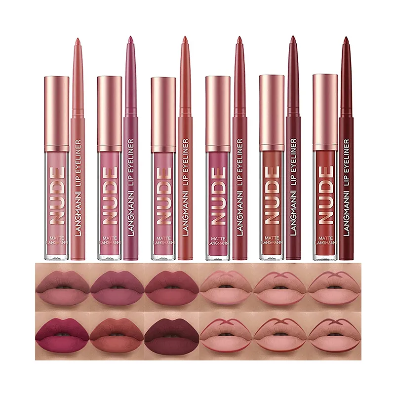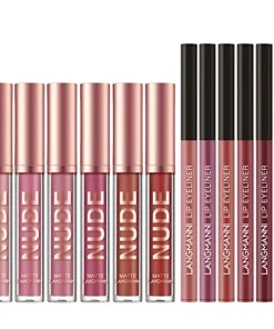 6 Matter Lippenstift mit 6 Liplinern Strapazierfähiger Nude Lipgloss Langanhaltende Antihaft-Cup Nicht verblassen Wasserdicht Hochpigmentierter Samt Lipgloss Kit Beauty Cosmetics Make-up Geschenk für Mädchen