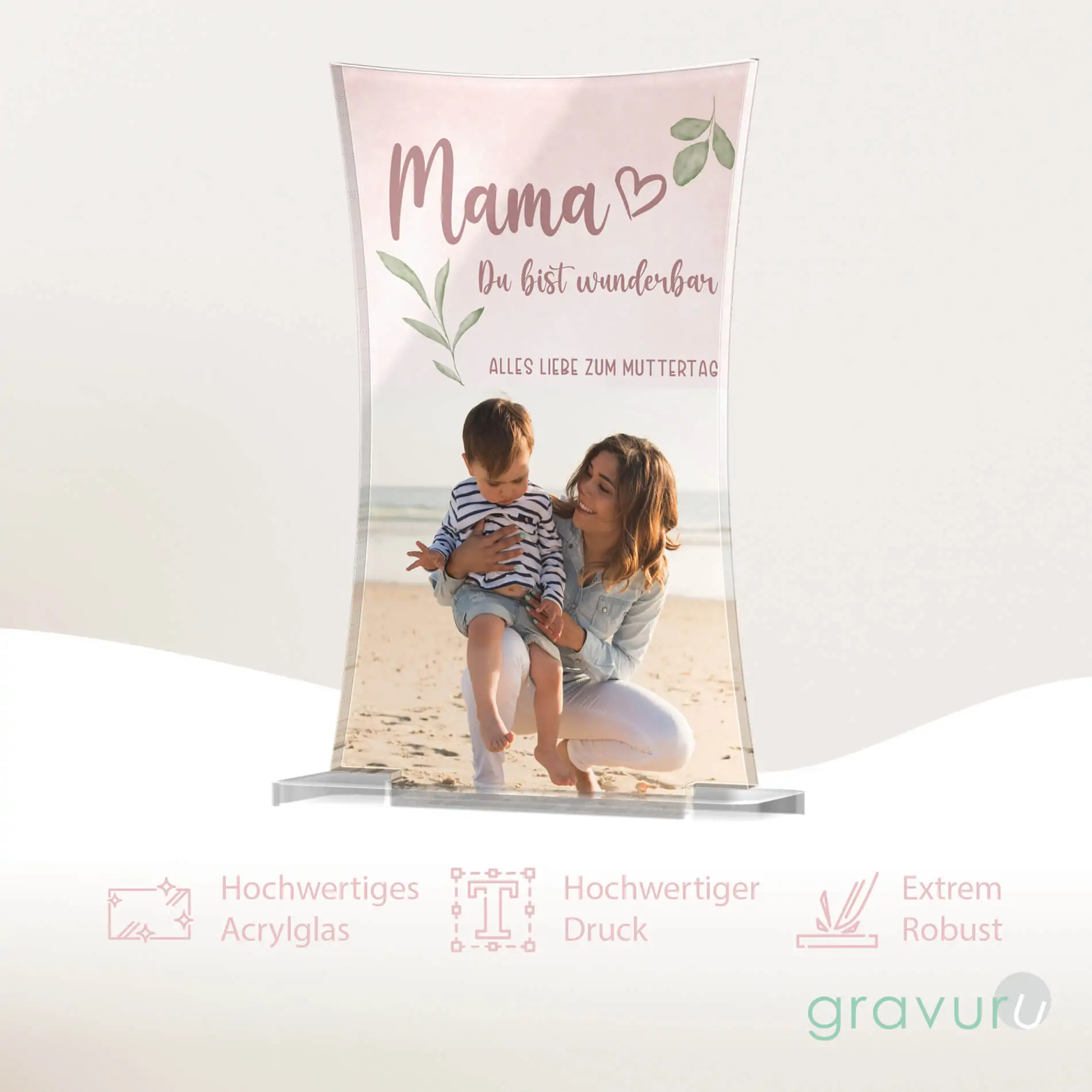Material: Hochglanz Acrylglas mit UV Druck – Größe: 10 x 16 cm – Stärke: 5mm – inklusive Stand Fuß aus klarem Acrylglas (Einstecksystem)