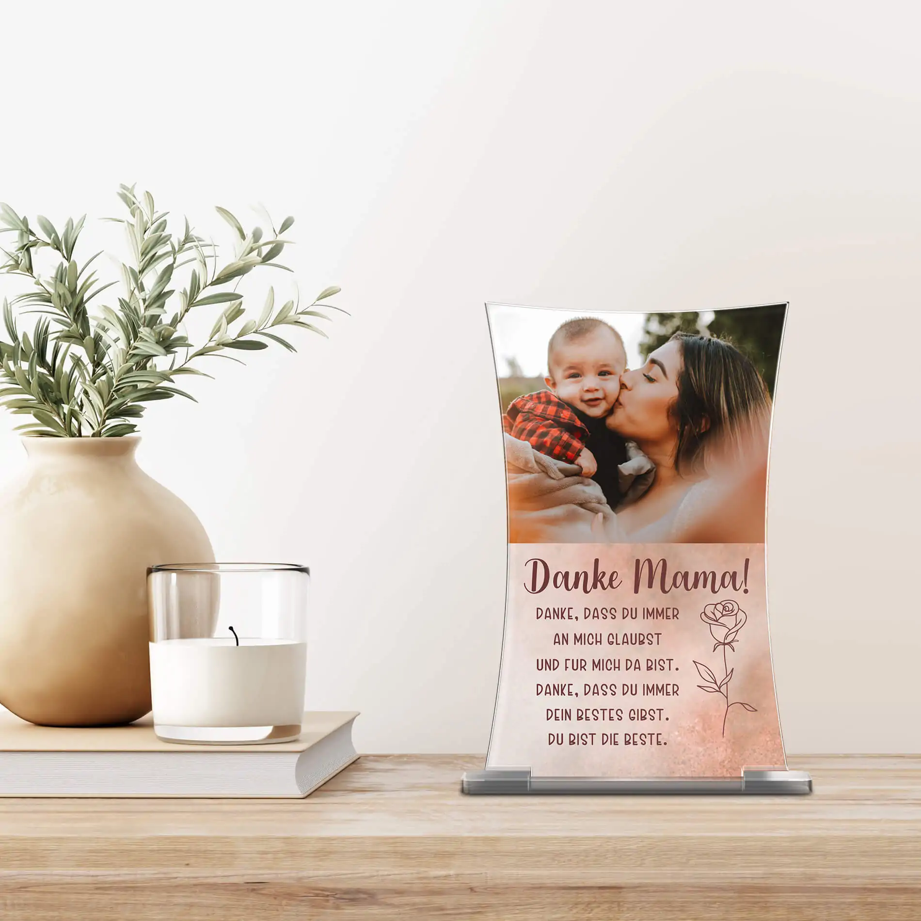 Verewige einen unvergesslichen Moment, einen besonderen Menschen oder einen geliebten Vierbeiner auf unseren schönen Standbildern aus hochwertigem Hochglanz Acrylglas. Bei uns kannst Du ein einzigartiges Erinnerungsstück für Dein Wohnzimmer, den Arbeitsplatz oder jeden anderen Ort Deiner Wahl ganz nach Deinen individuellen Vorstellungen erstellen. Fülle das Standbild mit Leben, indem Du ein Design auswählst und ein persönliches Foto einfügst. Anschließend kannst Du es nach Deinem Belieben mit einer persönlichen Widmung oder einem unserer unzähligen Motive verzieren. Deiner Kreativität sind keine Grenzen gesetzt. Das Bild liegt leicht geneigt auf der Seite, wodurch es bei Lichteinstrahlung eine hübsche Spiegelung aufweist. Auch im Dunkeln kannst Du dich von Deinem Standherz begeistern lassen, indem Du dahinter eine Kerze anzündest, welche das Standbild im gemütlichen Kerzenschein leuchten lässt.