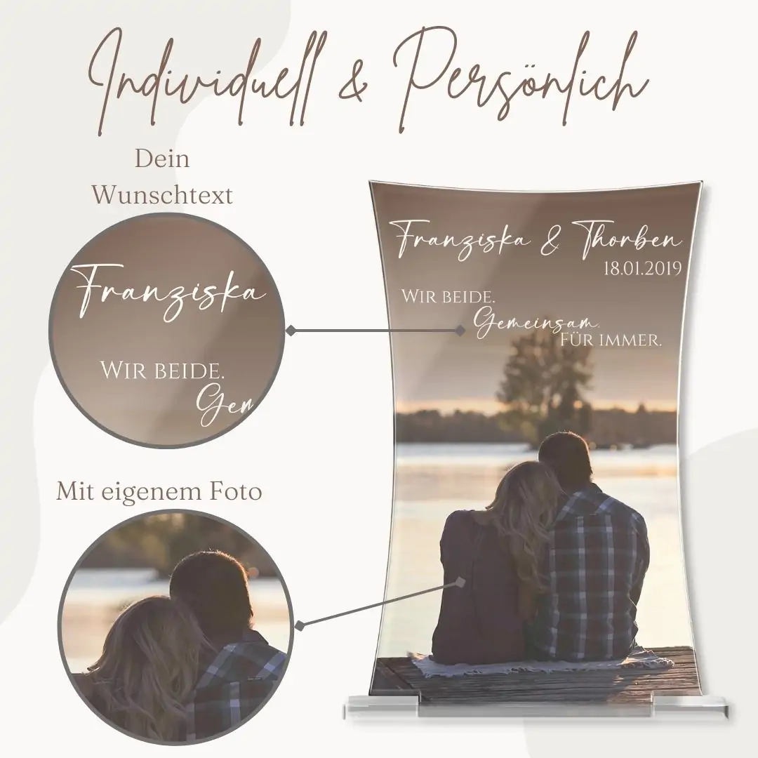 Tipp: Unsere Dekobilder zum Aufstellen eignen sich hervorragend als personalisierte Geschenkidee zum Valentinstag, zur Hochzeit, Verlobung oder natürlich auch einfach als Zeichen der Liebe zu jeder Gelegenheit. Mit diesem stimmungsvollen Geschenk ist Dir die Zuneigung Deiner Liebsten sicher.
