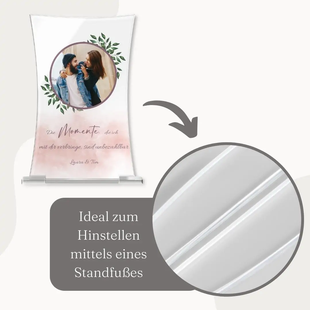 Gestalte Dir bei uns ein gefühlvolles Standbild ganz nach Deinen persönlichen Wünschen und Vorstellungen. Lade hierfür ein Bild von Dir und Deinem Partner, Deinem letzten Urlaub oder Deinem vierbeinigen Weg Begleiter hoch und hauche so Deinem märchenhaften Fotogeschenk Leben ein. Runde das Design mit einem persönlichen Schriftzug in einer Farbe und Schriftart Deiner Wahl ab und verschönere es optional auch mit einem unserer Motive. Dank der kinderleichten Bedienung unseres Online Konfigurators gelingt die Personalisierung im Handumdrehen. Die berührungsaktiven Hilfslinien sowie die Zentrierungsfunktion helfen dir bei der optimalen Ausrichtung von Bildern, Text und Motiven. Verschaffe Dir dank der Sofortanzeige von Deinem Standbild aus Acrylglas schon online ein detailliertes Bild und bessere kleinere Eingabefehler sofort aus. Dadurch können wir Dir immer ein Produkt fertigen, welches exakt Deinen Vorstellungen entspricht.