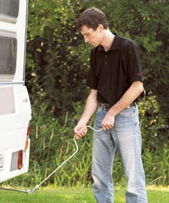 Das AL-KO Komfort-Kit ermöglicht es, aufrecht stehend über ein Kreuzgelenk die Stützen zu bedienen.