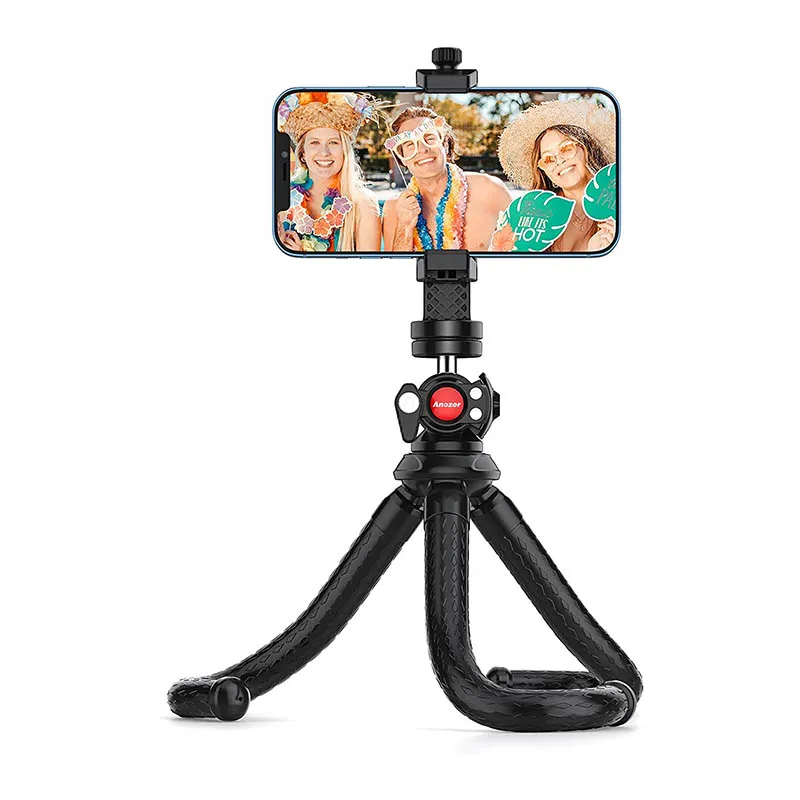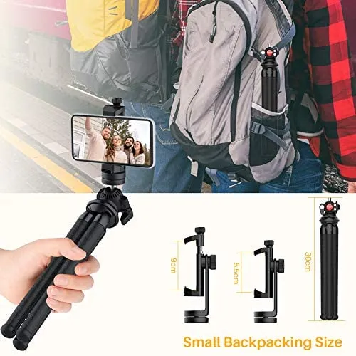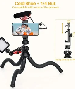 Anozer Handy Stativ, Smartphone Stativ flexibel, Tragbar Kamera Stativ mit Universalclip und Kaltschuhhalterung, um 360 °drehbares Tripod Selfie Stick für Smartphone, SLR-Sportkamera