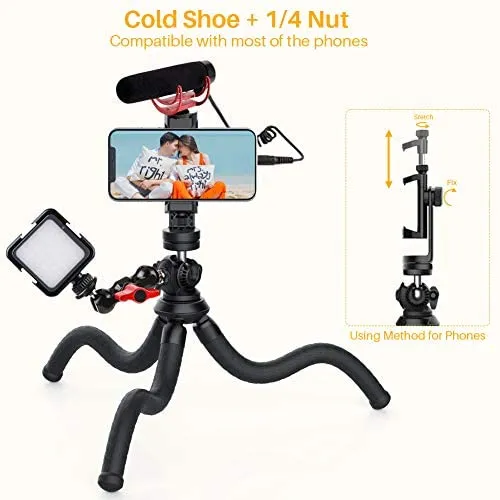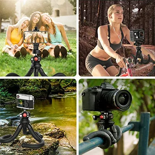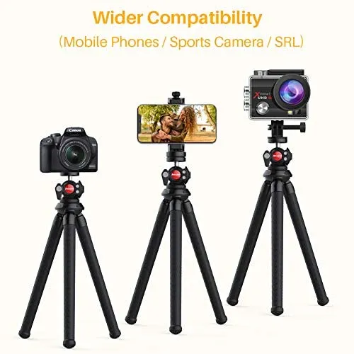 [BREITERE KOMPATIBILITÄT]: Mit diesem handy Stativ flexibel werden zwei Befestigungsköpfe geliefert, eine für Handy und eine für eine tatsächliche Kamera. Das Handystativ ist fast voll kompatibel mit DSLR-Kamera,Action-Cams, Nikon / Canon wie DBPOWER / Garmin Virb XE / SJJAM SJ4000 usw. Das Handy-Stativ funktioniert gut mit 11 Pro / 11 Pro Max / XS Max / XS / 8 / 8+ 7/7 + / 6S + / 6S / 6 / 5S, usw.