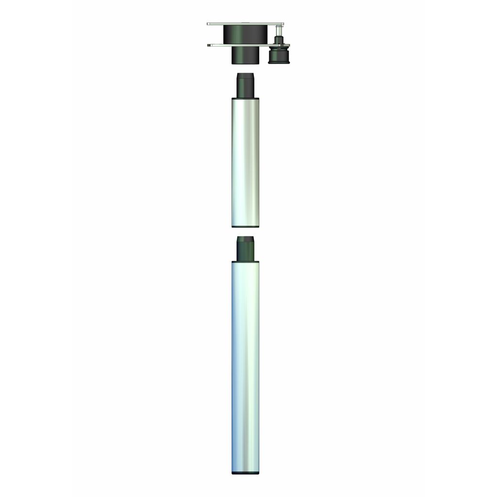3-tlg. Tischfuß mit integriertem Ausdrehmechanismus zur Tischplattenerweiterung; mittlere Unterteilung des Steckfußes ermöglicht Bettenbau; obere Unterteilung des Steckfußes ermöglicht ein einfaches und platzsparendes Verstauen des Tischfußes bei Nichtnutzung.