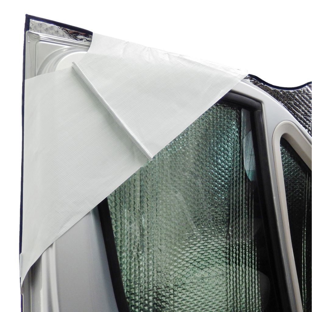 Im Winter Isolierung gegen Kälte, im Sommer Schutz vor Erwärmung. Die Matten werden (ohne Schrauben oder Bohren) in die Türkanten eingehängt und via mitgelieferten Gummispannern abgespannt. Die Türtaschen sind verstellbar, so dass sie auch bequem über ein montiertes Verdunkelungssystem passen. Four Seasons sind gefertigt aus wetterfester Thermofolie mit beidseitig bedampfter UV-stabilisierter Polyesterfolie; die Front kann geöffnet werden.