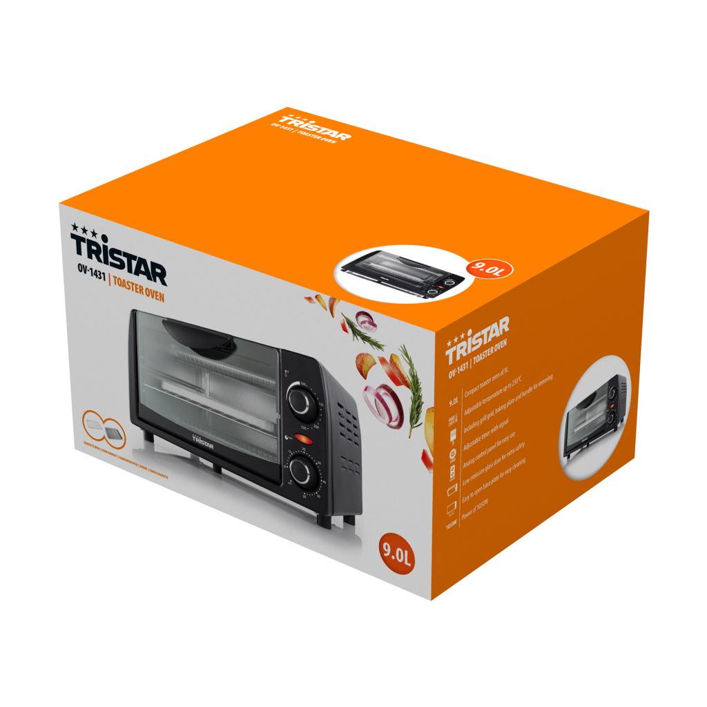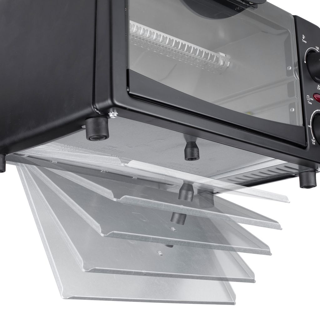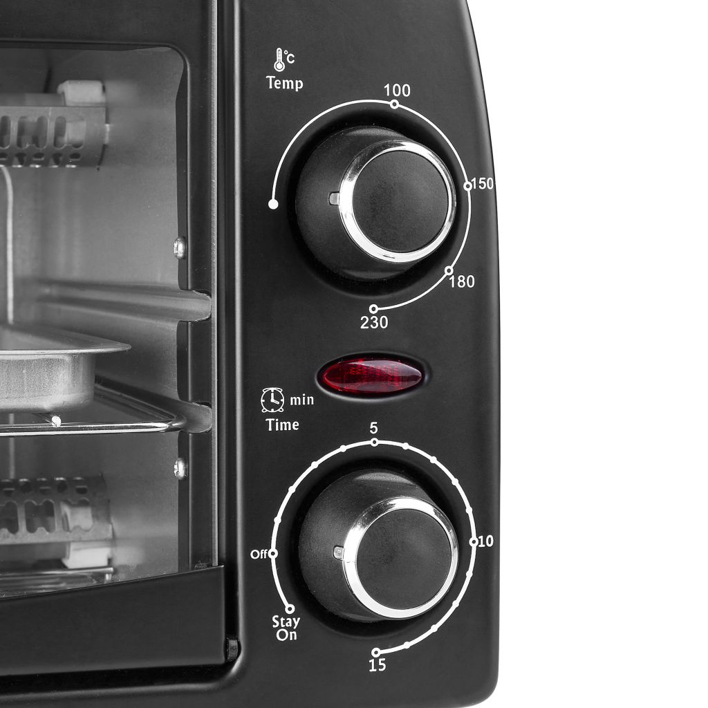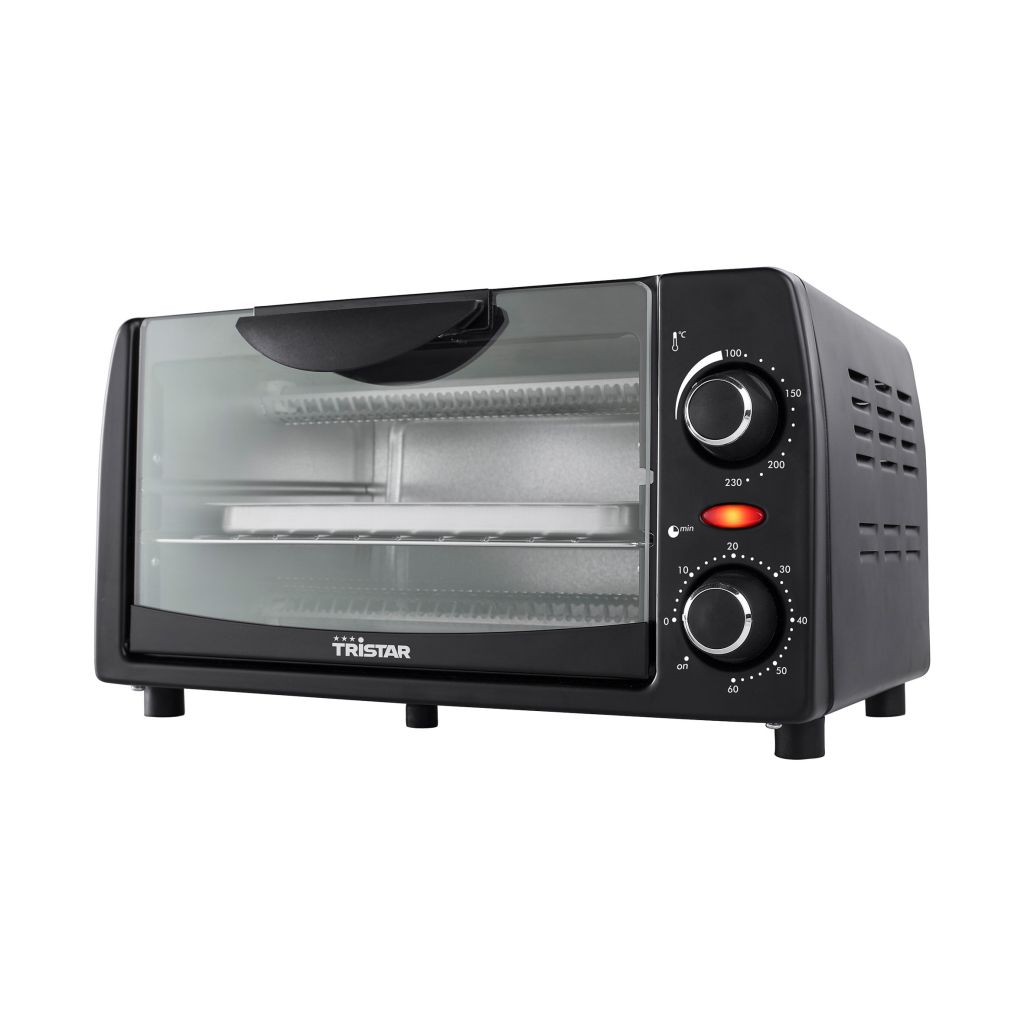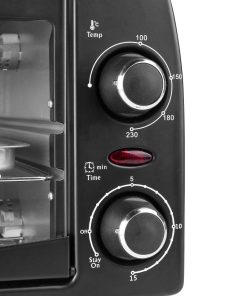 Dieser kompakte Ofen mit 9 Liter Volumen und großem Fenster ist zum Grillen, Backen und Toasten geeignet
