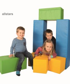 Diese stabilen Schaumstoff-Bauelemente haben einen strapazierfähige Bezugsstoffe in verschiedenen Farben. Verdeckte Spezialreißverschlüsse vermindern die Verletzungsgefahr und übernehmen durch hohe Luftdurchlässigkeit die Aufgabe von Entlüftungslöchern. Der Kern besteht aus PUR-Schaum (Polyuertan) und wird FCKW-frei geschäumt. Alle Produkte werden nach europäischen Qualitätsstandards gefertigt.