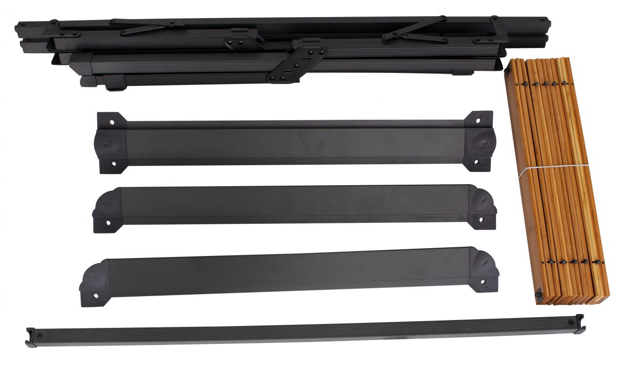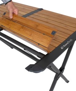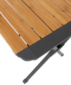 Tisch mit Aluminiumrahmen und Bambusplatte. Der robuste Aluminiumrahmen verfügt über eine zusätzliche Stabilisierungsstange zwischen den Tischbeinen, die für zusätzliche Stabilität sorgt. Die Top-Platte ist aus wasserdichtem Bambus-Material. Der Tisch lässt sich leicht zerlegen und zu einem kleinen Paket zusammenfalten, so dass wenig Platz zum Verstauen benötigt wird. Verstellbares Tischbein. Inkl. Tragetasche.