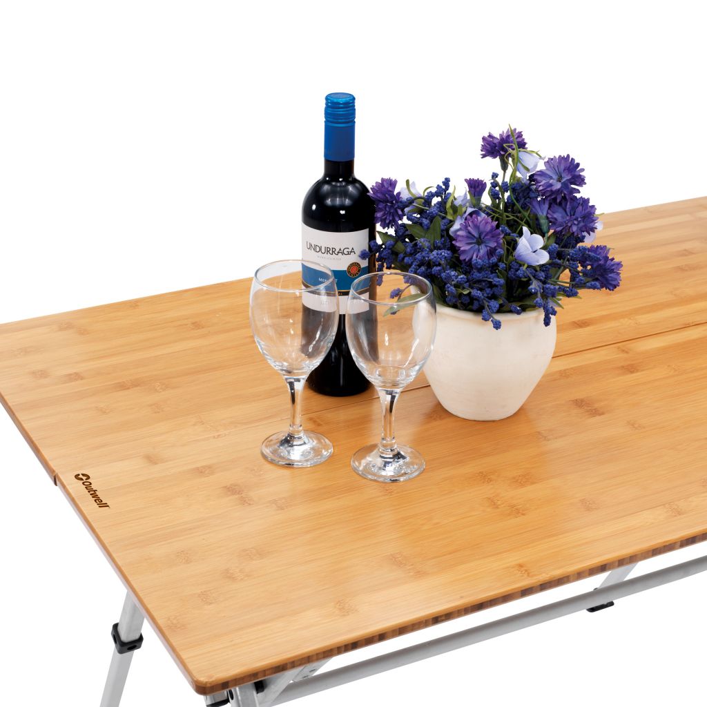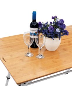 Kamloops ist ideal für Camper, die einen stilvollen Tisch mit modernem Design und Komfort wollen. Gefertigt aus langlebigen Materialien, ausgestattet mit strapazierfähiger Bambustischplatte und Aluminiumrahmen. Sekundenschneller Auf- und Abbau. Praktische Griffe ermöglichen bequemen Transport. Leicht zu transportieren. Kleines Packmaß. Verstellbare Füße.