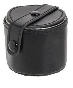 Vier kleine Edelstahlbecher in einem Lederetui.