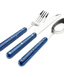 Das klassisch, elegante Besteckset Pioneer in Emailleoptik mit durchgängiger Edelstahlkonstruktion bietet Qualität und Strapazierfähigkeit. Das Besteckset ist die perfekte Ergänzung für die GSI Outdoors Emaille-Ausstattung. Inhalt: je 4 Löffel, Messer, Gabel.