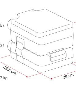 Einfach zu bedienende tragbare Chemie-Toilette von höchster Qualität. Kompakte Maße, einfach sauberzuhalten. Solide und praktische Handpumpe mit großem Spülvolumen, problemlos auseinanderzunehmen. Sicheres Entlüftungsventil. Robustes Unterteil, in einem Stück gefertigt, deshalb keine Wasseraustrittsmöglichkeiten. Jeder Behälter wurde elektronisch auf Dichtigkeit überprüft. Praktische seitliche Haken, mit denen der obere und untere Teil zusammen gehalten werden kann. Robuster Handgriff für bequemen Transport. Einfach zu entleeren dank des großen Stutzens im Untertank.
