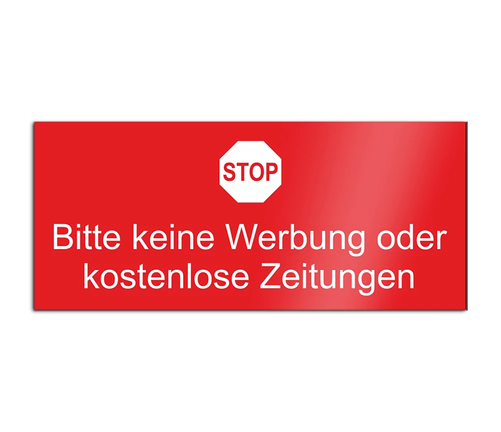 Sie sind es leid ständig ungewünschte Prospekte oder kostenlose Zeitungen in Ihrem Briefkasten zu finden und suchen nach einem robusten Hinweisschild mit der Aufschrift „Bitte keine Werbung“