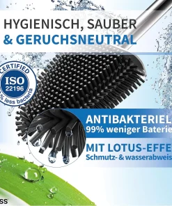 Dank patentiertem Design passt die Silikon-Klobürste in jedes Bad – zur Wandmontage oder freistehend. Ohne Bohren, platzsparend & modern!