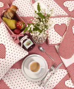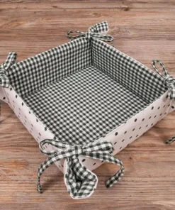 Die Brotkörbe LISE in Grün und Rot vereinen rustikales Flair mit praktischer Funktionalität. Ihr charmantes Design aus gepunktetem und kariertem Muster verleiht deinem Tisch eine gemütliche und einladende Atmosphäre. Mit handlichen Maßen von 20×20 cm sind sie die ideale Wahl für kleinere Portionen Brot, Brötchen oder Gebäck. Die anpassbaren Stoffbänder sorgen für eine stabile Form und eine flexible Nutzung.