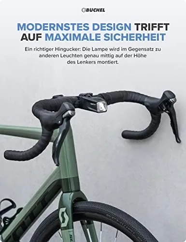 🚴♂️ MODERNES DESIGN: Die Ahead Fahrradleuchte ist ein echter Blickfang und wird mittig am Lenker montiert, ähnlich wie ein Motorrad-Scheinwerfer.