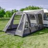 Seitenwände: linke und rechte Seitenwand. Fenster mit Moskitonetz. Klappe mit Reißverschluss. Eingangstür ausstellbar als Sonnendach (Aufstellstäbe nicht im Lieferumfang enthalten).