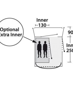 Vorderwand vollständig herausnehmbar. Regendichtes Vordach. Vordereingang mit Moskitonetztür, großes Fenster. Optional kann mit dem Innenzelt Milestone eine Schlafkabine hinzugefügt werden.
