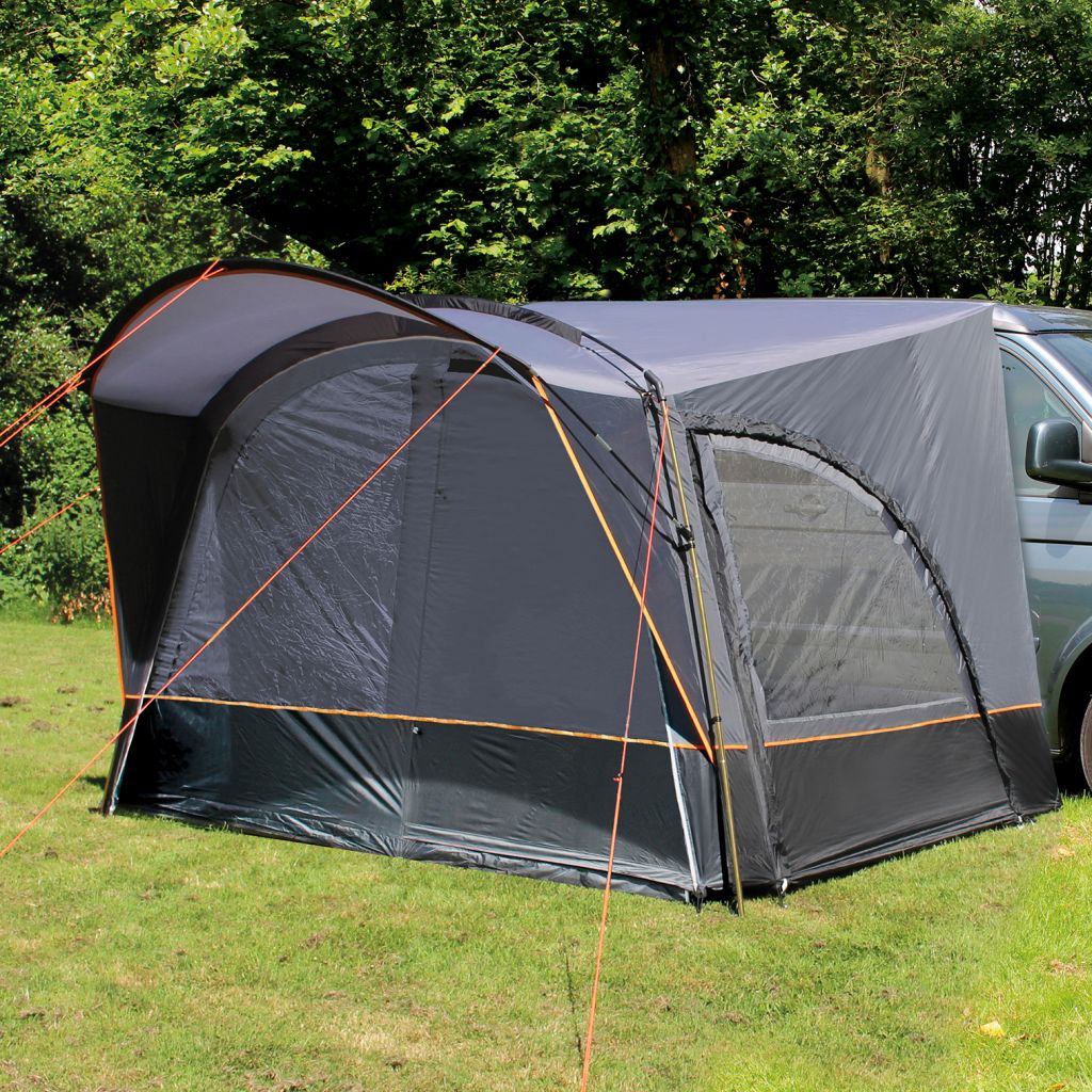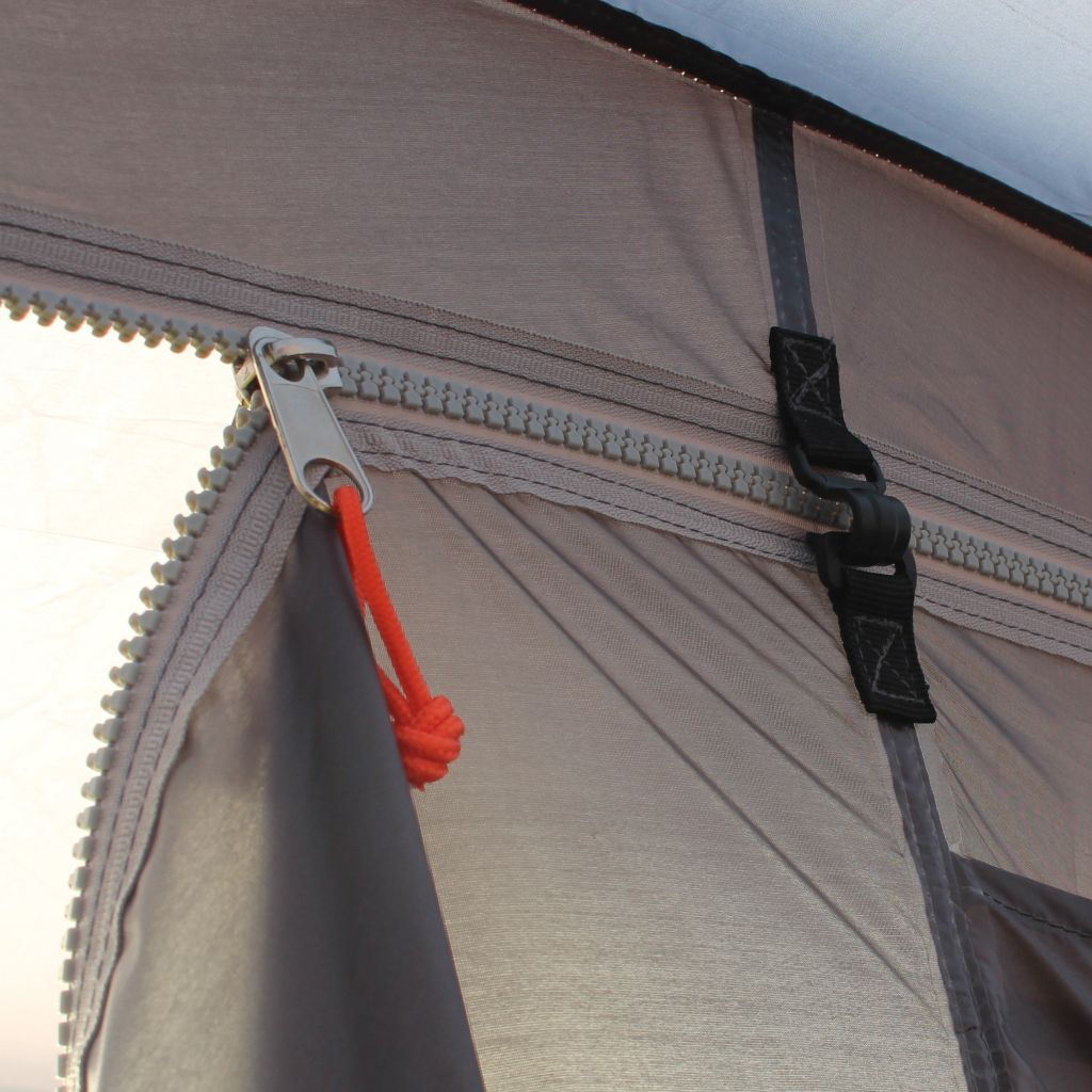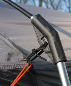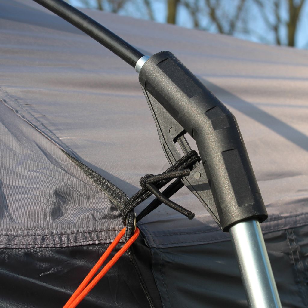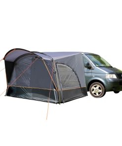 Lieferumfang: Zelt, ø 12,7 mm GFK- und ø 19 mm Stahlgestänge, Befestigungsstange zur Montage am Bus, Abspannmaterial und eine praktische Tragetasche.