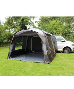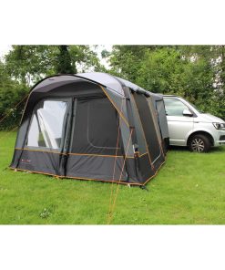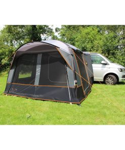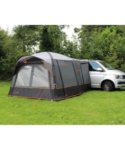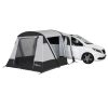 Freistehendes Busvorzelt mit praktischem Vordach über dem Eingang. Für ein gutes Klima sorgen viele Ventilationsmöglichkeiten im Zelt. Das San Marino Air Busvorzelt hat verschiedene Verbindungsmöglichkeiten zum Fahrzeug: mit 7 mm Keder, Schleusenstab oder mit Klettband an der Reling. Das Portofino RV Air ist mit 6+7 mm Keder ausgestattet, der mittels Reißverschluss entfernt werden kann.