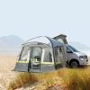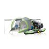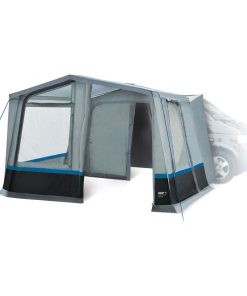 Dieses Busvorzelt hat zwei wettergeschützte Eingänge. Es verfügt über Panorama-Klarsichtfenster mit Vorhängen, sowie Moskitonetzfenster. Die Vorderwand ist hochrollbar. Eine Seitenwand kann als Sonnendach ausgestellt werden! Bei Bedarf kann die Verbindung gelöst und das Fahrzeug weggefahren werden – ohne das Zelt abzubauen! Angenähter Doppelkeder 5,8 mm und 7,2 mm.