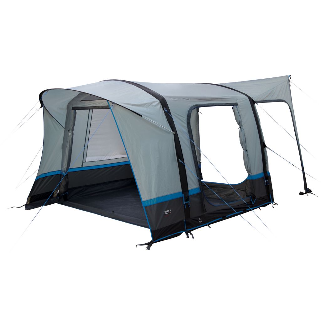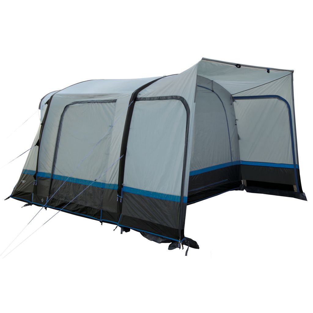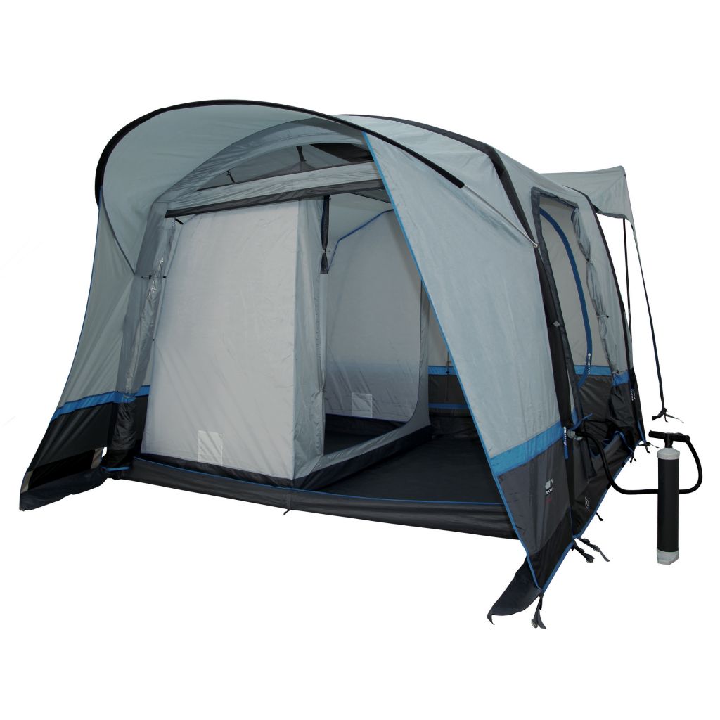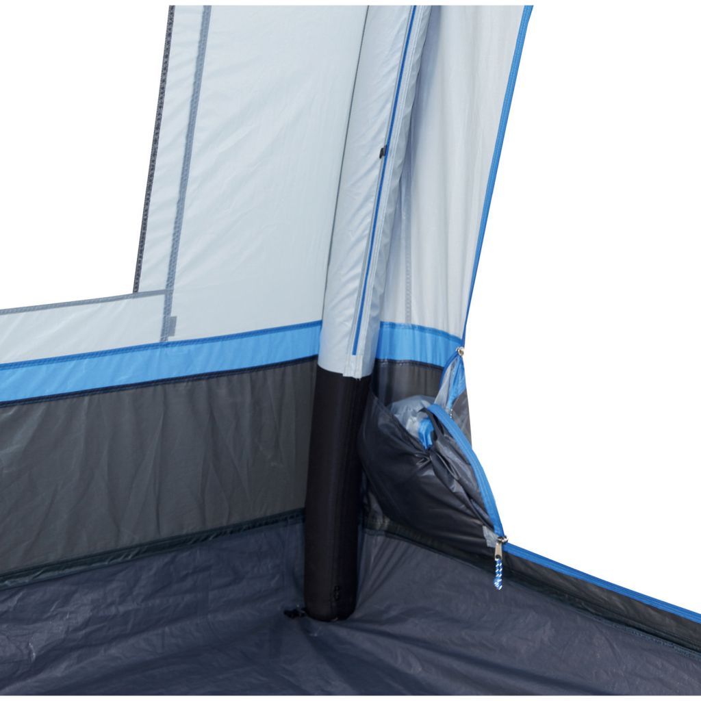 Das freistehende Trento Air steht in nur 5 Minuten perfekt. Die hochwertigen integrierten TPU Luftschläuche können bis zu 7 PSI aufgeblasen werden und stehen wie ein Haus. Die extra starken Gewebekanäle schützen die Luftschläuche zusätzlich. Der Gewebekanal hat einen Reißverschluss zur Reparatur oder dem Austausch der Luftschläuche. Für einen einfachen Zugang befinden sich die Ventile an der Außenseite. Der fest mit dem Außenzelt vernähte Boden verhindert das Eindringen von Schmutz, Nässe und Krabbeltieren. Die Bodenwanne kann verandaseitig mittels Reißverschluss herunter geklappt werden und liegt dann flach auf dem Boden. Dauer- Hochentlüftung für optimale Luftzirkulation. Extra robuste Reißverschlüsse. Schleuse mit 2 Türen für einfachen Zugang. RV- Kabeleingang, Lampenhalter runden den Komfort ab. Schleusenkanal mit Hohlsaum inklusive Schleusenstange und angenähtem Doppelkeder Streifen 5,8/7,2 mm.
