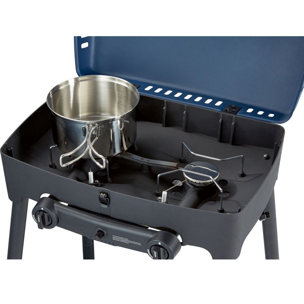 - 2 getrennt regelbare Edelstahlbrenner (2 x 2,2 kW) für direktes/indirektes Grillen und Backen