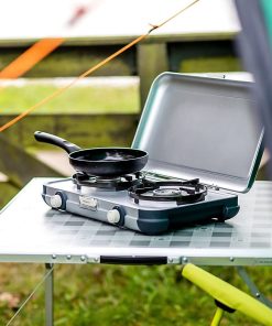 Die Camping Kitchen ist ein leichter und einfach zu transportierender Kocher mit zwei Brennern, der sowohl für den Betrieb mit Kartusche als auch Gasflasche erhältlich ist. Durch das kompakte Design lässt er sich sehr platzsparend verstauen. Die hitzeresistenten Topfhalter aus emailliertem Stahl dienen zusätzlich als Windschutz und können für ein schnelles und einfaches Säubern der Camping Kitchen einfach abmontiert werden.