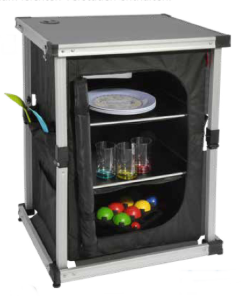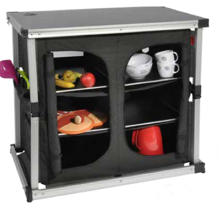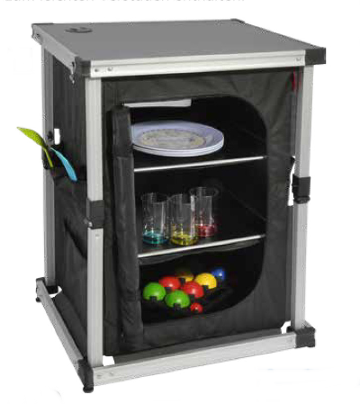 Für alles bestens gerüstet sind Sie auf jeden Fall mit der Isabella Möbelserie. Praktisch sind die eingearbeiteten Lüftungsgitter und der Klett, mit dem sich die aufgerollten Türen fixieren lassen, sowie die höhenverstellbaren Füße zum Ausgleichen von Bodenunebenheiten. Die Oberflächen sind sehr wertig und mit Aluminium eingefasst, was diese auch stoßfest macht, zudem sind alle Oberflächen und auch der Bezug (besteht zu 60 % aus PVC und 40 % Polyester) sehr leicht zu reinigen. Ein stabiler, einfacher und intuitiver Klapp-Mechanismus sorgt dafür, dass die Möbel rasch aufgebaut sind und im Urlaub keine Zeit verloren geht. Durch das Konstrukt aus Aluminium und Kunststoff sind die Möbel nicht nur stabil und belastbar, sondern auch sehr leicht. Zudem ist im Lieferumfang eine praktische Transporttasche mit Griffen zum leichten Verstauen enthalten.