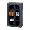 Neu entwickelter Campingschrank mit revolutionärer Falttechnik: Es gibt keine Einzelteile mehr, denn das eloxierte Aluminiumgestell ist mit der Schrankhülle verbunden, was ein sehr kleines Packmaß möglich macht. Die Füße sind höhenverstellbar, rückseitig ist eine Lüftungsgaze integriert. Der bis 30 kg belastbare Schrank besitzt 4 höhenverstellbare Füße für sicheren Stand, seitlich ist eine Hakenleiste an der robusten Aluminiumrollplatte angebracht. Eine praktische Transporttasche ist im Lieferumfang enthalten. Maße B 83,5 × T 45,5 × H 100 cm, Gewicht 5,7 kg.