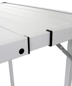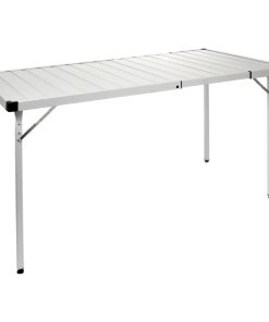 Kompakt klappbarer Outdoor-Tisch mit ausziehbarer Tischplatte. Gestell und Platte sind komplett aus hochwertigem Aluminium gefertigt.