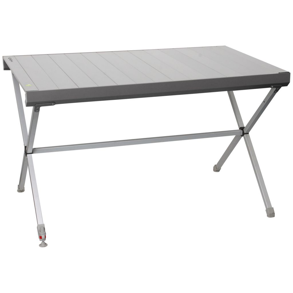 Patentierter Aluminiumtisch mit Rollplatte und einem speziellen, einfach zu montierenden Klapprahmen.