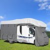 Schutzhülle speziell für Wohnwagen. Seiten aus atmungsaktivem TNT-Gewebe, Dach aus HighDensity PE. UV-stabil, wasserabweisend und waschbar. Schützt ihren Wohnwagen vor extremen Witterungseinflüssen. Verlängert die Lebensdauer des Caravans um viele Jahre. Lack, Gummidichtungen, Fenster und Polsterungen werden geschützt. Große Seitenöffnung, mit 2 Reißverschlüssen zum hochrollen, ermöglicht schnellen Zugang ins Innere. Rundum Zurrgurte gewährleisten einen festen Sitz. Farbe grau. Lieferung in komfortabler Packtasche.