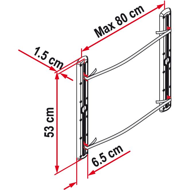 Robustes System zum Fixieren von Tischen, Stühlen, Ersatzrädern etc. in Staukästen oder der Heckgarage Ihres Wohnmobils. Die Anbringung ist sehr einfach – die beiden soliden ABS-Schienen zusammen mit den im Lieferumfang enthaltenen Schrauben an der Wand fixieren, die Haken in die Schiene einführen, die Spannbänder einstellen – fertig. Der Cargo Strap besteht aus 2 ABS-Schienen 53 x 6,5 cm, 4 Haken, 2 Spannbändern und 24 Schrauben. Max. Tragkraft: 20 kg. Für schwerere oder sperrigere Gegenstände wird empfohlen das Cargo Strap Kit zu verwenden.