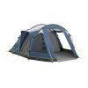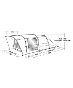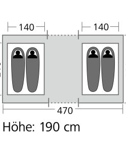 Das Außenzelt wird zuerst aufgebaut und anschließend die Innenzelte eingehängt. Das hat den Vorteil, dass die Innenzelte während des Aufbaus bei regnerischem Wetter trocken bleiben. Zwei getrennte Schlafkabinen. Tagsüber kann ein Innenzelt ausgehängt werden um den Wohnraum zu vergrößern. Ideal bei schlechtem Wetter. Die Eingänge mit Gazeeinsatz bieten optimale Belüftung und Insektenschutz. Inklusive Tragetasche mit Reißverschluss.