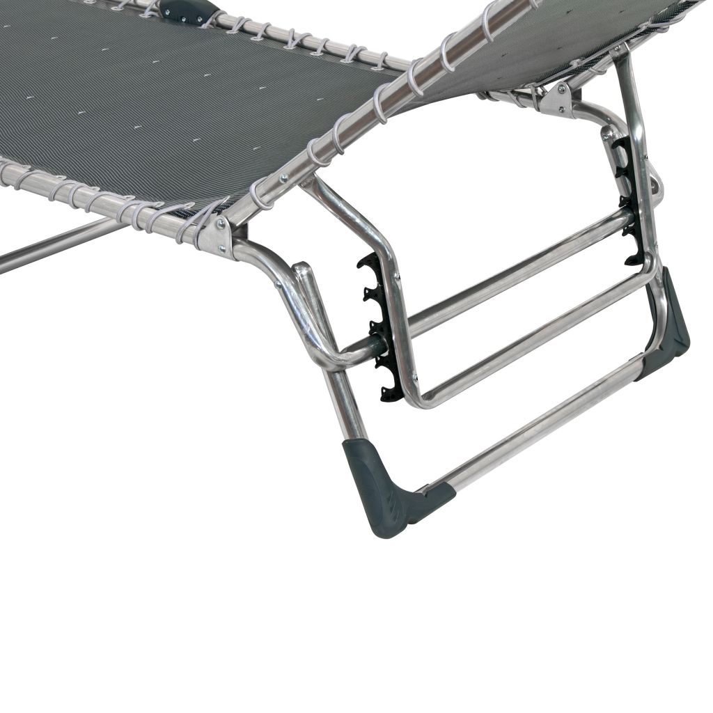 Die Liege ist durch Spanngummis elastisch, passt sich dem Körper an und die Rückenlehne ist in 4 Positionen verstellbar.
