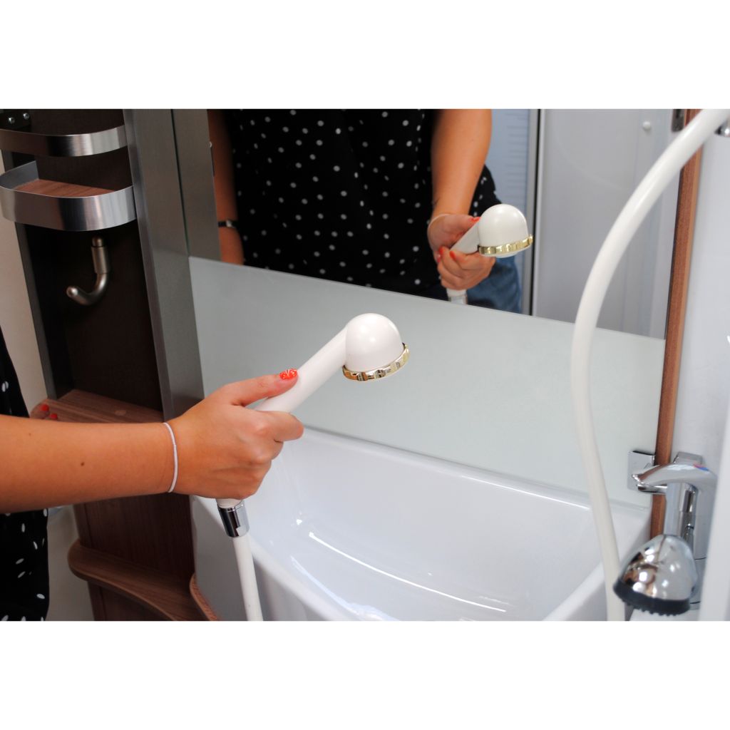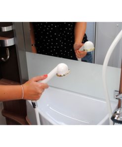 Bestehend aus: Brausekopf, Schlauch 1,5 m, Wandhalterung und Adapter. Anschluss: 3/8″.