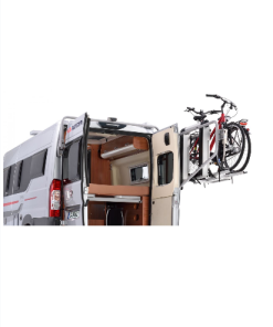 Der Futuro E-Lift ist die konsequente Weiterentwicklung des Futuro in Sachen Nutzerfreundlichkeit – die Plattform für Kastenwagen lässt sich per Fernbedienung elektrisch absenken. Der Träger ist mit einer Nutzlast von 60 kg auch für schwere E-Bikes geeignet. Stabil montiert an den Hecktürscharnieren und während der Fahrt an 2 weiteren Punkten fest mit der Karrosserie verbunden ist ein sicherer und klapperfreier Transport am Fahrzeugheck gewährleistet. Durch die hohe Transportposition werden die Türen nicht belastet und die Anhängekupplung bleibt frei zugänglich – eine Kombination mit Boots- oder Motorradanhänger ist möglich. Zum Beladen lässt sich die Plattform bis zur Ladekante des Fahrzeuges absenken, so können schwere E-Bikes leicht verladen und gesichert werden. Der Träger passt zu den Hochdachtypen H2 und H3 und Flügeltüren bis max. 90° Öffnungswinkel.