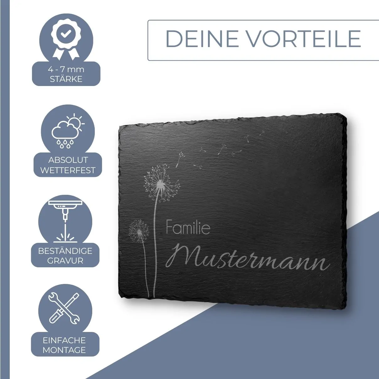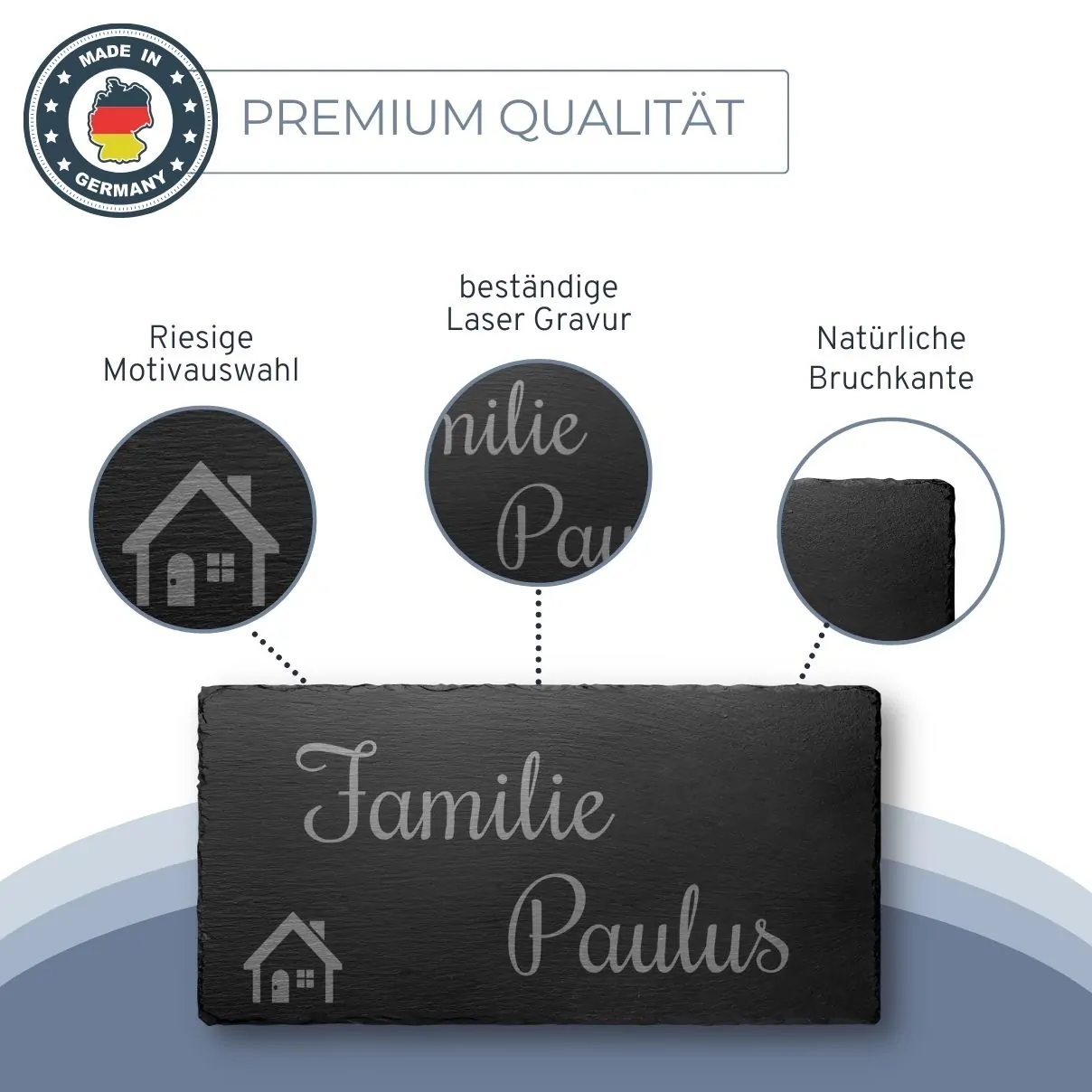 Edles Namensschild aus Schiefer mit Gravur 15×10 cm