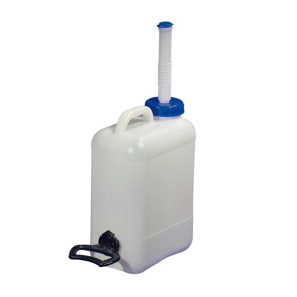 Der ideale Einfüllkanister für das Befüllen Ihres Frischwassertanks. Mit dem seitlichen, drehbaren Griff lässt sich der Kanister ausgezeichnet rangieren. Der Entlüftungshahn sorgt für problemloses Ausgießen. Der stabile Ausgießer lässt sich nach Gebrauch einfach im Kanister verstauen. Durch die große Mündung (DIN 96) lässt sich der Kanister leicht mit der Hand reinigen.