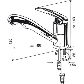 Mit 1/2“ Untertischanschluss für einen Brauseschlauch. Ideale Verbindung mit Duschset „Duett“. Mit Schalter.