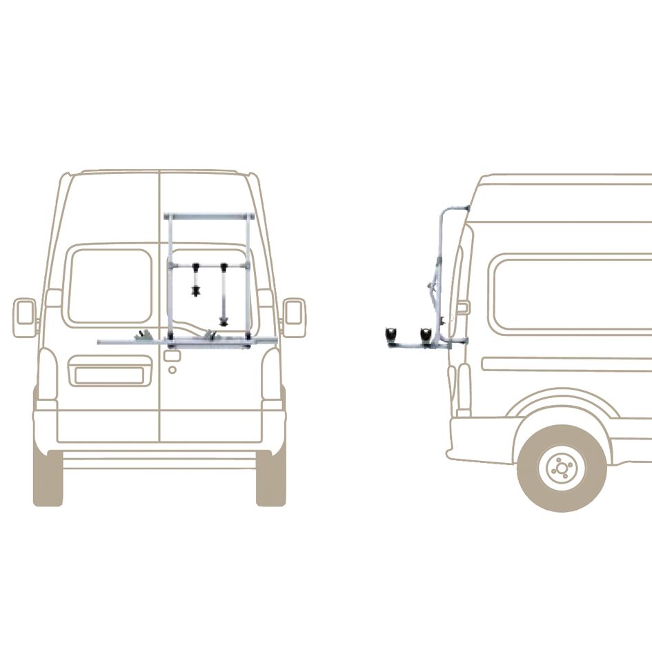 Vielseitig einsetzbarer Fahrradträger, dank individueller Höhenverstellung von 80 – 155 cm. Passend für Reisemobile und in Verbindung mit dem Montageschienensatz auch für den Kastenwagen Renault Master und Opel Movano Modelljahr 2000 – 2010.